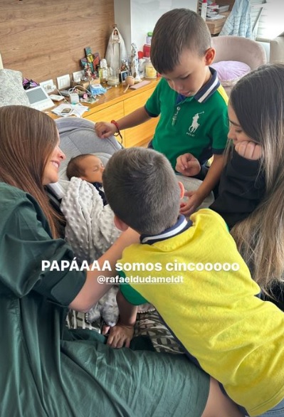 A través de sus historias, la merideña manifestó su emoción y en un video acompañada por sus hermanos menores, escribió: “Papá somos cinco”, quien se encontraba en Cali junto a su otra hermana Victoria acompañando a los pequeños en este momento tan importante.