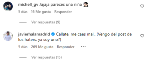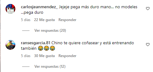 “No papi seguí cantando”, “pareces una niña”, “Callate, me caes mal. Vengo del post de los haters, ya soy uno”, “pega más duro mano no modeles. pega duro”, “el Saco es más grande que tu”, son las opiniones en la publicación.